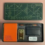 The Fragnote pen ensures a smooth, precise writing experience, supporting productivity and note-taking in any professional setting. The gold bar paperweight adds a touch of elegance and sophistication to the desk, symbolizing achievement and ambition. The vibrant A6 diary provides ample space for planning, journaling, and organizing tasks, helping professionals stay on top of their goals. The Derby cardholder combines practicality with refined design, keeping essential business cards organized and accessible. Completing the hamper, the solid cologne offers a subtle yet confident personal statement, perfect for high-performing executives.