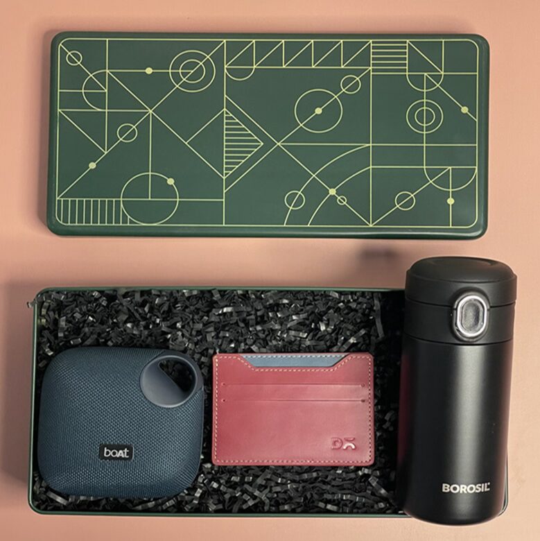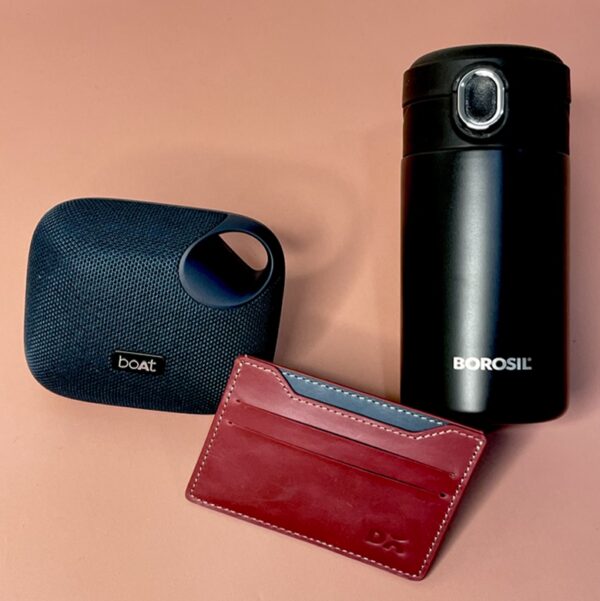 The Connected Edit is a premium corporate gift hamper designed for professionals who value sound, style, and everyday utility. Featuring a Daily Object cardholder, Boat portable speaker, and Borosil Travelsmart 260ML flask, this curated collection blends practicality with modern sophistication.