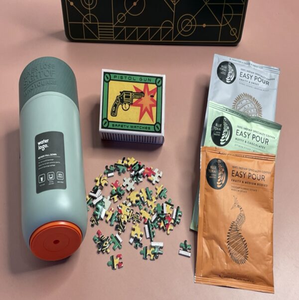 At the heart of the collection is a beautifully crafted Artiart bottle, combining artisanal elegance with practical functionality, ensuring hydration in style throughout busy workdays. Complementing it is Blue Tokai coffee, celebrated for its rich aroma and bold, invigorating flavor, providing the perfect energizing boost for focused work sessions. Adding an element of playful mindfulness, the included puzzle offers a creative escape, helping to refresh the mind, spark inspiration, and enhance mental clarity.