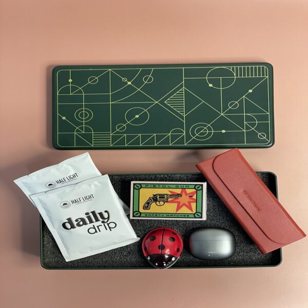 The hamper also includes a foldaway eyewear case—sleek, functional, and perfect for keeping essentials organized on the go—along with a mini puzzle, providing a playful yet mindful escape that encourages relaxation and mental agility. Each item is carefully selected to balance productivity, entertainment, and thoughtful sophistication, making this hamper ideal for those who value style and utility.